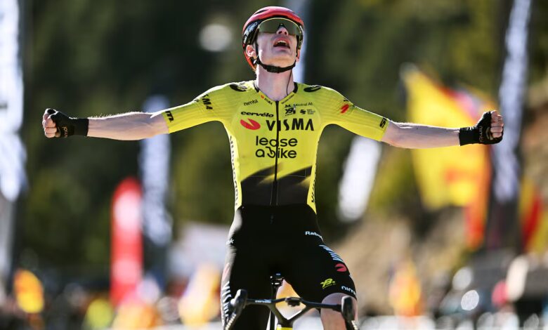 Allá va Vingegaard, plato grande y arrancada de fuego, que me siga quién pueda. Y se hace oscuro, fundido a negro; nadie le tose ni le persigue, nadie capaz de cogerle la rueda, ni siquiera un Evenepoel al que le salen grilletes. Se marcha solo el danés, rodillo imperial camino del cielo y del éxito, suya es la gloria. Por detrás, sin embargo, los ciclistas juegan y serpentean, admiten que hay un ogro en el pelotón y que lo suyo no pasa de ser actores secundarios, que ya hay un campeón. Piden turno Gall y Lenny Martínez. Pero sobre todo lo festeja Vingegaard en lo alto del Coll de Pal, conquistador de la etapa reina y posiblemente de la Volta, ya con casi un minuto de ventaja. Una exhibición mayúscula, un ciclista de época que solo encuentra en Pogacar la piedra de su zapato.