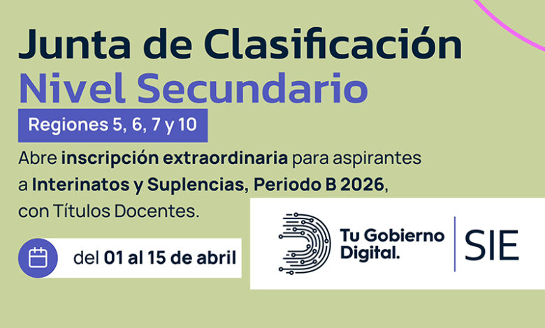 El Ministerio de Educación de la Provincia, a través de la Junta de Clasificación de Nivel Secundario, sede Resistencia, informa que desde ayer 1 al 15 de abril del corriente año se encuentra abierta la inscripción a interinatos y suplencias, correspondiente al período “B” 2026, destinada a docentes con título habilitante.