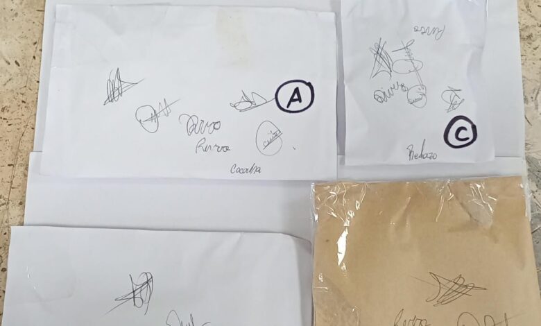 Durante el procedimiento, los efectivos llevaron a cabo una requisa en la que encontraron 35 envoltorios y un paquete compacto que contenían una sustancia que, tras las pruebas de campo, dio positivo para cocaína. El peso total de lo secuestrado ascendió a 24,3 gramos.