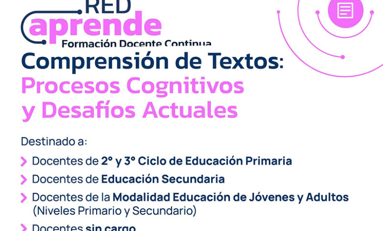 El Ministerio de Educación, a través de la Dirección de Educación Superior, anunció el lanzamiento del trayecto de formación “Comprensión de Textos: Procesos Cognitivos y Desafíos Actuales”, en el marco del Plan Provincial de Alfabetización y del Programa de Formación Docente Continua y en Servicio 2024-2027 “Red Aprende”.