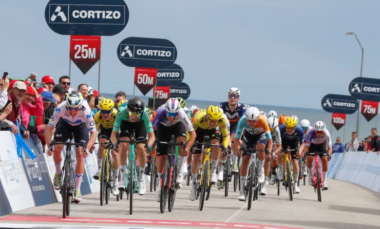 El ciclismo es apaisado, como el paisaje, como la olas del Cantábrico bruto a las que da velocidad —russsshhhhh, susurra la espuma— el dron televisivo cuando chocan contra la costa de la Mariña lucense como queriendo competir con el pelotón —riiiiiinnnnggggg, chirrían los frenos de disco—, que no es una serpiente, sino un mar en marejada en la última curva de la etapa, cuando ya ha saltado, incontenible, Carlos Canal, gallego de Xinzo de Limia, que gana su primera carrera como profesional junto a la playa agitada de Barreiros, y ya la marea crece y cubre los arenales que bordea la carrera desde Viveiro, Xove, Burela y Foz.