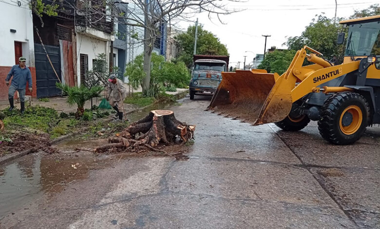 Más allá del drenaje hídrico, el temporal estuvo acompañado por fuertes ráfagas de viento que provocaron daños en el arbolado público. Por este motivo, cuadrillas de la Secretaría de Servicios Públicos se encuentran recorriendo la ciudad para la recolección de ramas y árboles caídos que obstruían la vía pública o representaban un riesgo para los vecinos.