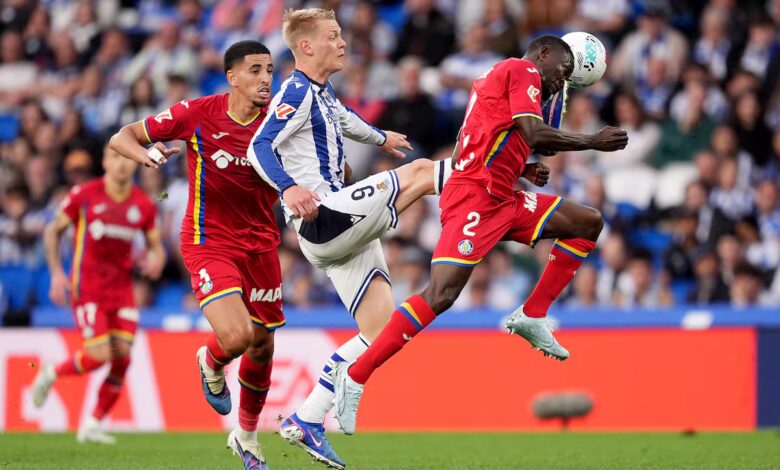 El partido de Anoeta comenzó como una celebración, casi como una extensión natural de la noche gloriosa vivida días atrás en La Cartuja. La Real Sociedad, aún envuelta en el eco reciente de su Copa del Rey, ofrecía el trofeo a su gente mientras el Getafe, disciplinado, cumplía con el pasillo de honor. Hubo aplausos, sonrisas y una sensación compartida de reconocimiento. Durante unos minutos, el fútbol fue lo de menos. Anoeta latía al ritmo de una felicidad reciente, todavía sin digerir. Pero el fútbol no entiende de homenajes prolongados. En cuanto el balón echó a rodar, la ceremonia quedó atrás y emergió el partido real. Y ahí, el Getafe dejó claro que no había viajado para ser figurante. Nunca lo hace. Menos aún ahora, cuando pelea por un objetivo que hace unos meses parecía inalcanzable.