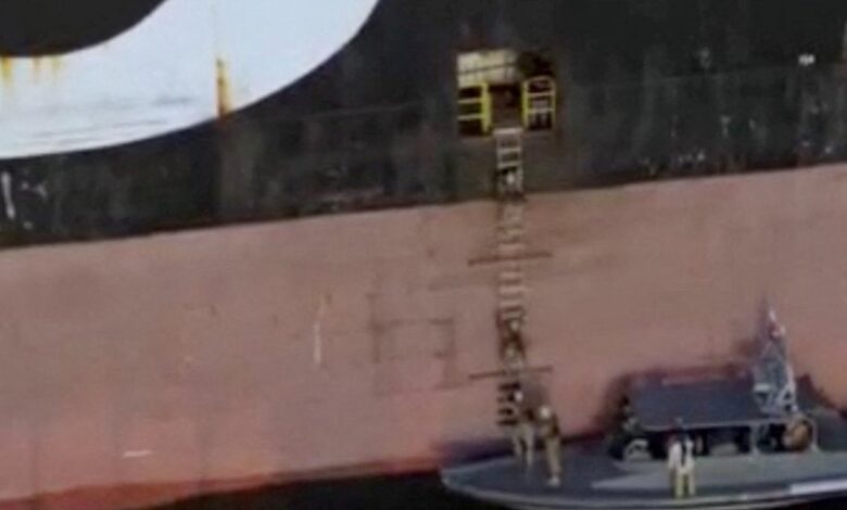 Una captura de pantalla de un video que supuestamente muestra la incautación de los buques portacontenedores MSC Francesca y Epaminondas en el estrecho de Ormuz, transmitido por la televisión estatal iraní y publicado el 22 de abril de 2026. Foto ReutersPero Irán sigue golpeando en la estratégica vía con una minúscula pero efectiva “flota mosquito”, como se la llama, que son unas pequeñas y ágiles embarcaciones que llevan drones y misiles y que son el dolor de cabeza del Pentágono, según informó The New York Times.