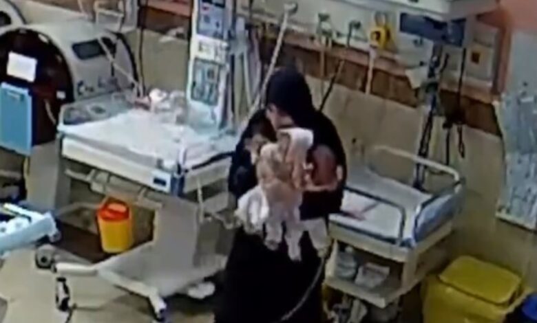 la dramática escena en que una enfermera rescata a tres bebés durante un ataque a un hospital de Teherán
