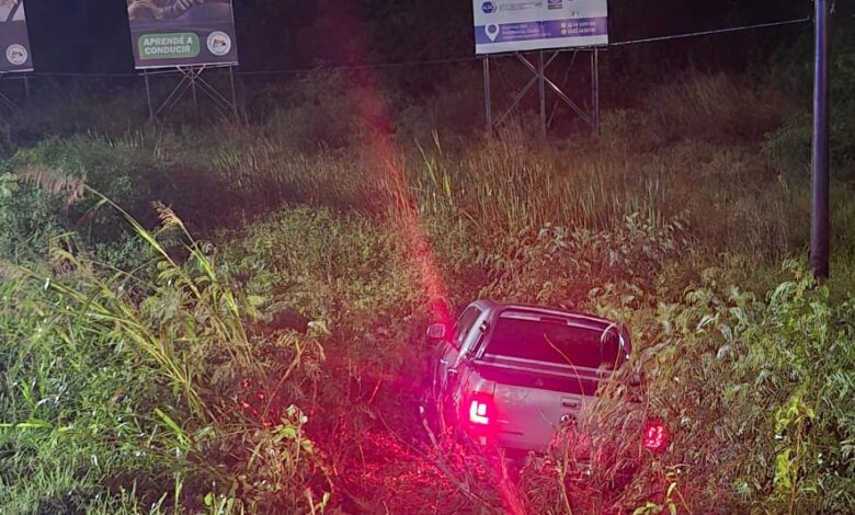 El hecho se registró sobre avenida Sarmiento al 3200, donde una camioneta Volkswagen Amarok protagonizó un despiste. Al arribar al lugar, el personal policial constató que el conductor habría perdido el control del vehículo debido a la calzada mojada, finalizando su recorrido en la banquina.
