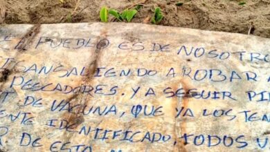 La policía de Ecuador encontró este domingo cinco cabezas humanas colgadas y exhibidas junto a un panfleto de advertencia en…
